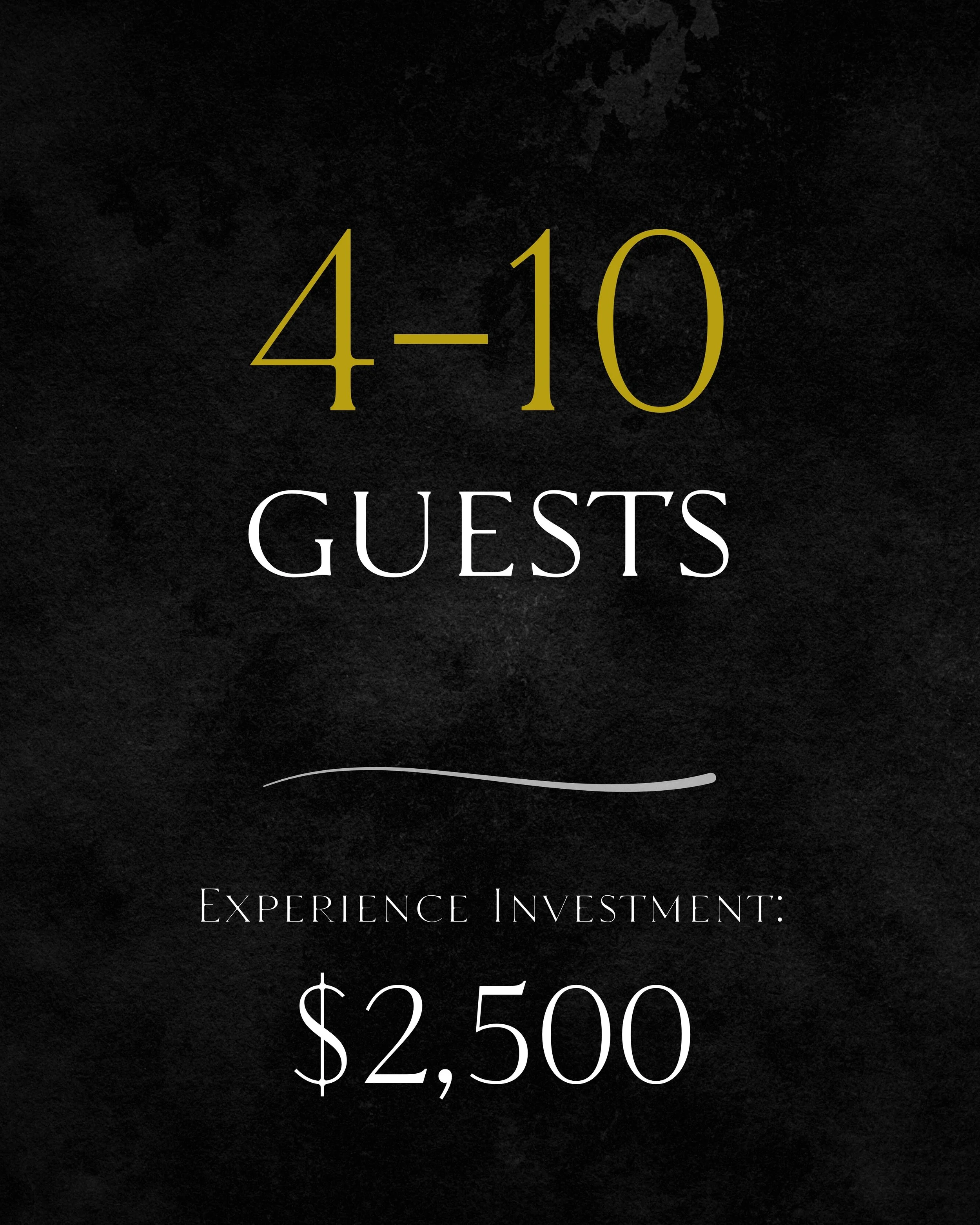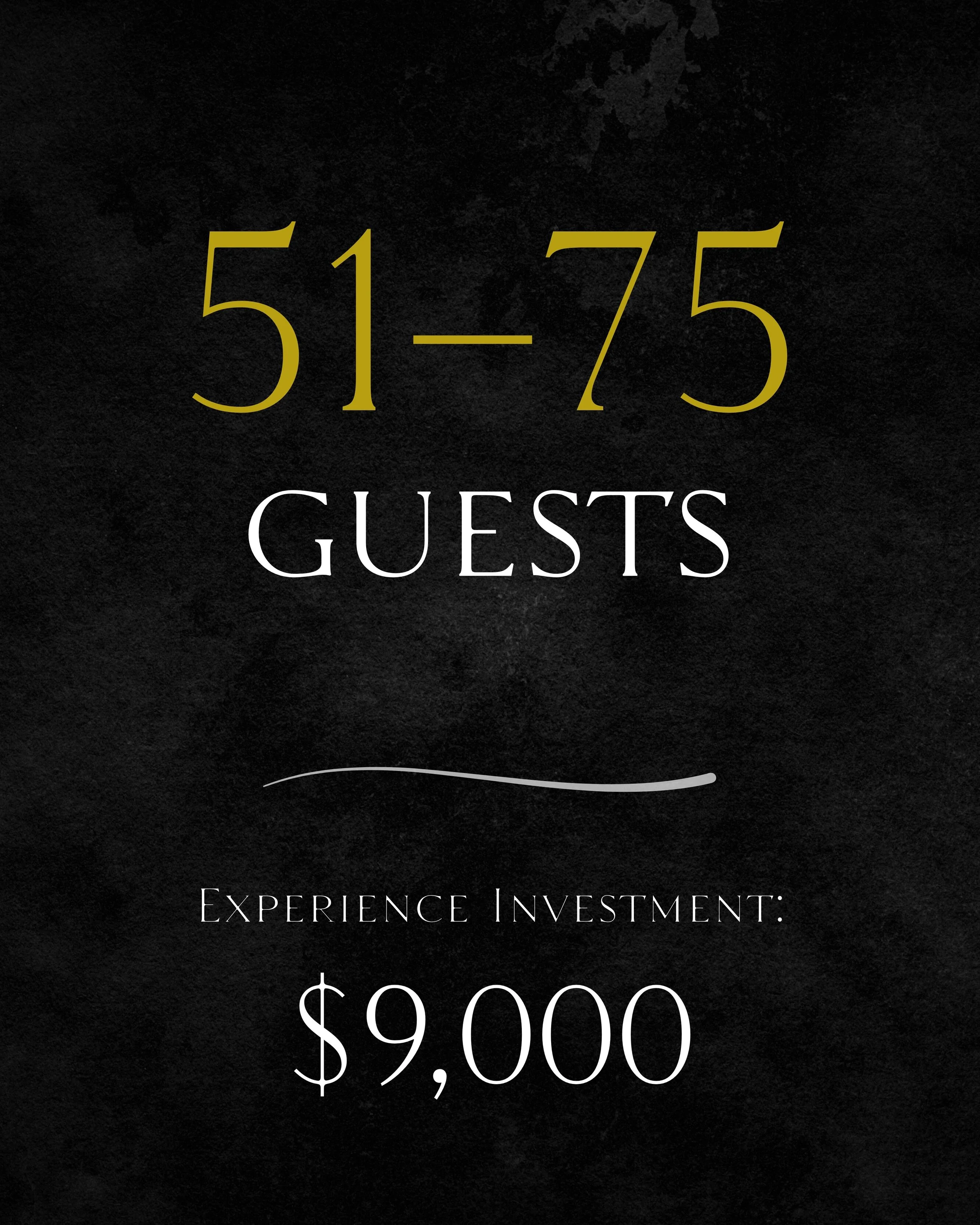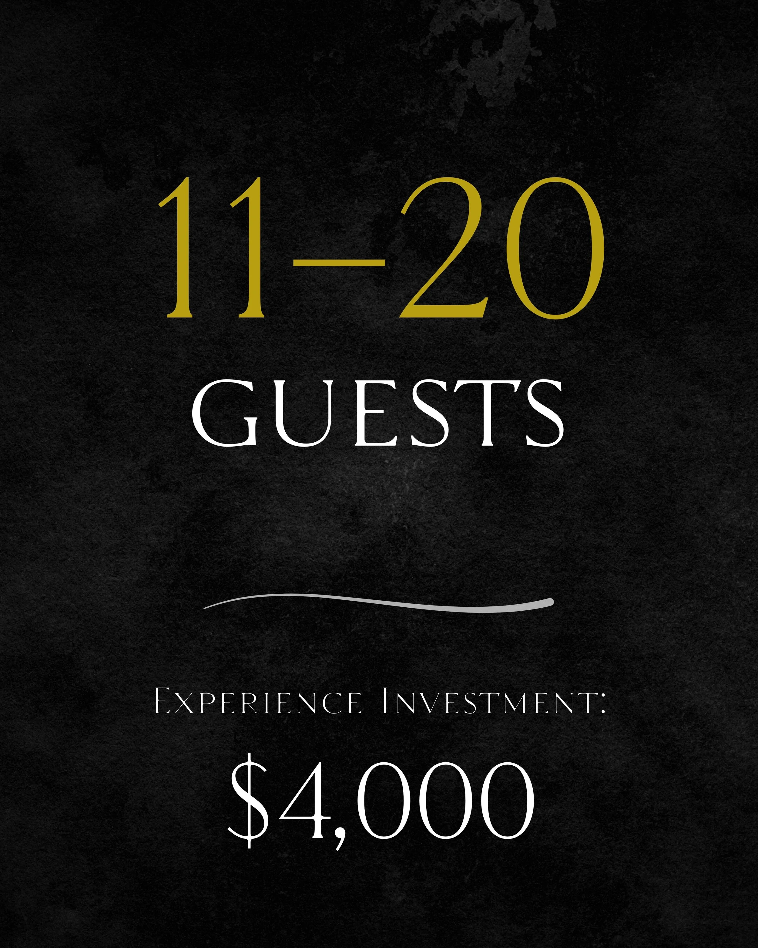 Group packages are outlined below and organized by number of guests. The prices shown are BASE PRICES! Your total cost will be calculated and shared after a consultation.